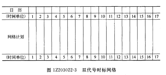 (4)双代号时标网络计划是以时间坐标为尺度编制的网络计划,如图1Z203022-3 所示
